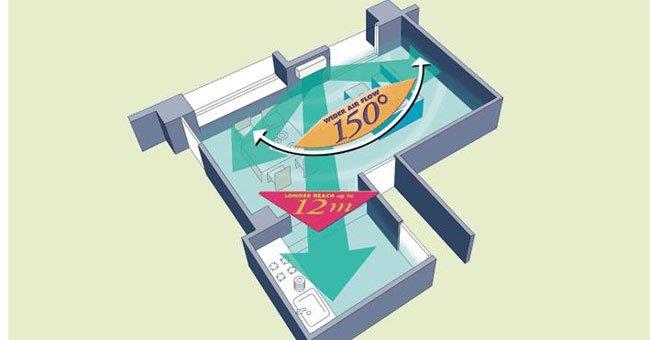 Cánh hướng dòng rộng là các cánh hướng gió có thiết kế đặc biệt, cho phép đẩy gió đi ở một góc lớn nhất và xa nhất trong phòng. Với các cánh hướng dòng này, luồng khí lạnh có thể được thổi đi với phạm vi cực rộng, từ góc đến giữa phòng hoặc bao phủ khắp phòng một cách dễ dàng. Từ đó, cả căn phòng đều được tận hưởng luồng gió mát theo nhiều hướng đứng lẫn ngang.