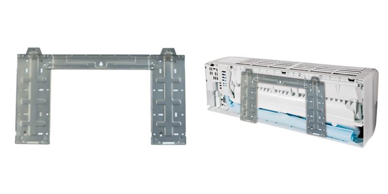 Phía sau dàn lạnh gắn phần giá đỡ có 2 móc cố định cùng trục lăn giúp dễ dàng chọn vị trí lắp đặt.