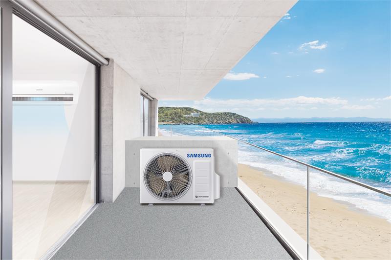 Cục nóng cũng được Samsung tiết giảm kích thước và trọng lượng, giúp dễ dàng di chuyển và lắp đặt, tiết kiệm diện tích, phù hợp nhiều không gian sử dụng.