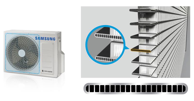 Dàn trao đổi nhiệt trong cục nóng ứng dụng công nghệ chống ăn mòn Durafin, tăng cường hiệu quả của dàn trao đổi nhiệt đồng thời ngăn ngừa tối đa quá trình ăn mòn khi vận hành.