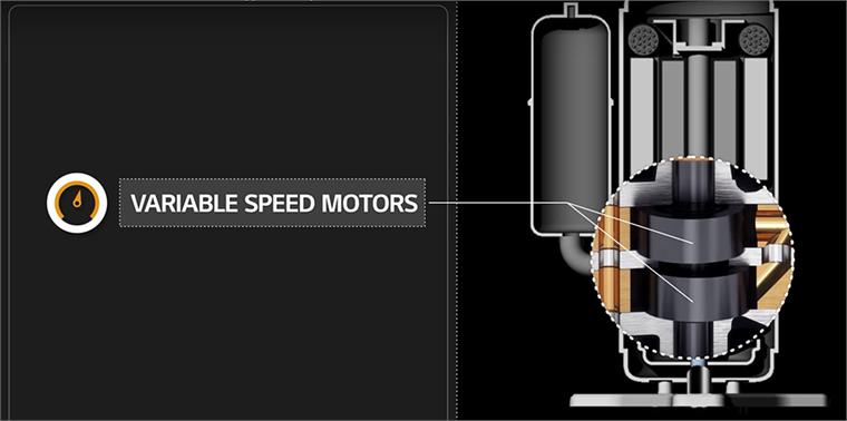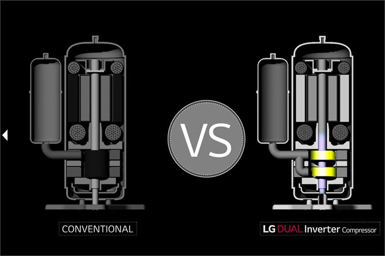 Về cấu trúc Dual Inverter, LG sử dụng hai mô-tơ bên trong bộ biến tần, nhờ vậy giảm bớt gánh nặng hoạt động cho hệ thống chỉ sử dụng một mô-tơ. LG cho biết công nghệ này sẽ có thể giảm được 70% điện năng tiêu thụ so với máy lạnh không sử dụng inverter.