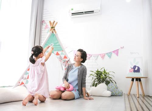 Bố mẹ khi bật điều hòa nên chọn chế độ comfort air để khí mát lưu thông đều, mang lại cảm giác dễ chịu cho bé